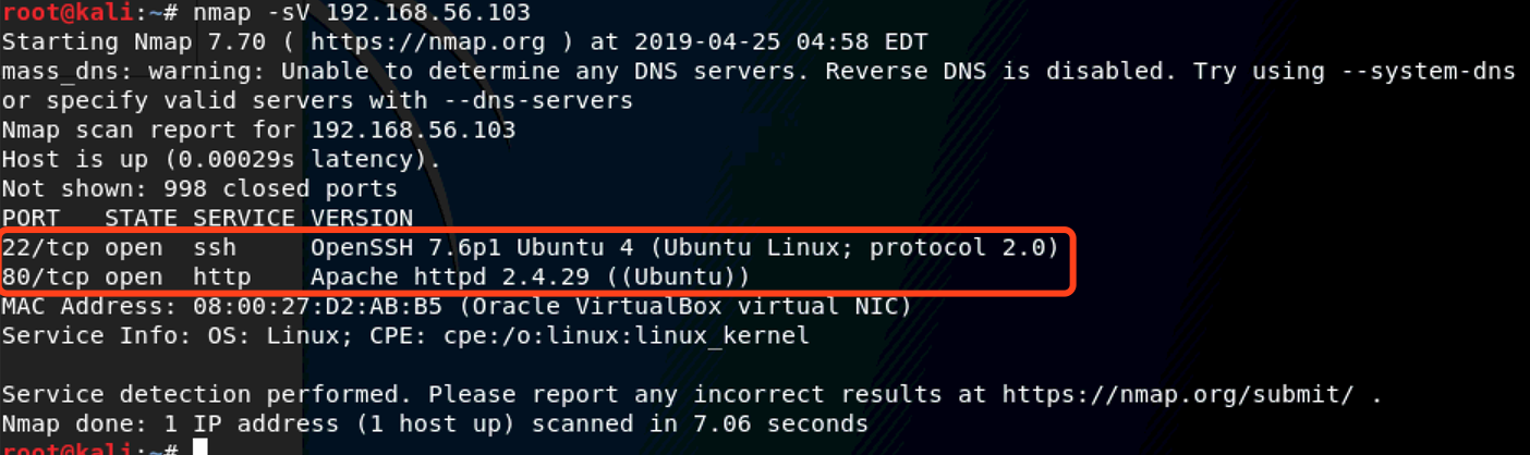 对IP地址进行nmap扫描:nmap -sV 192.168.56.103