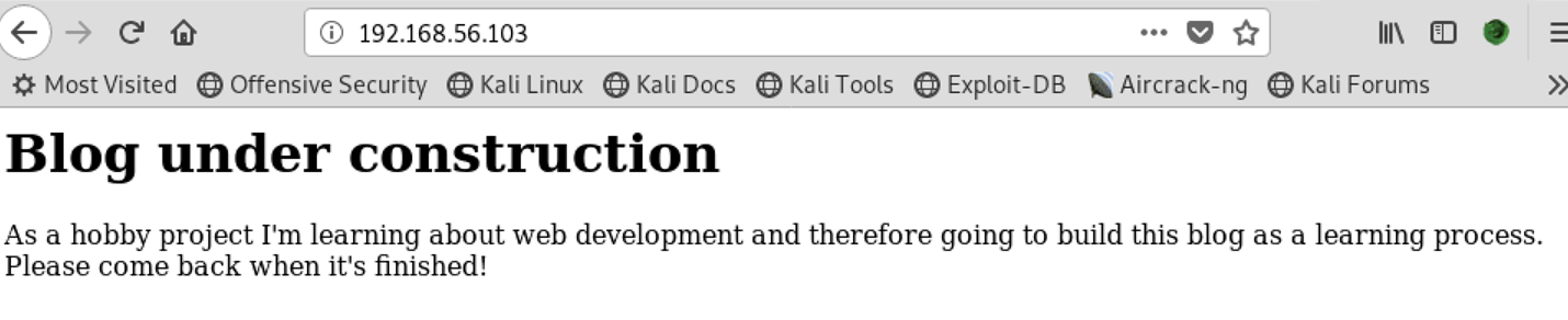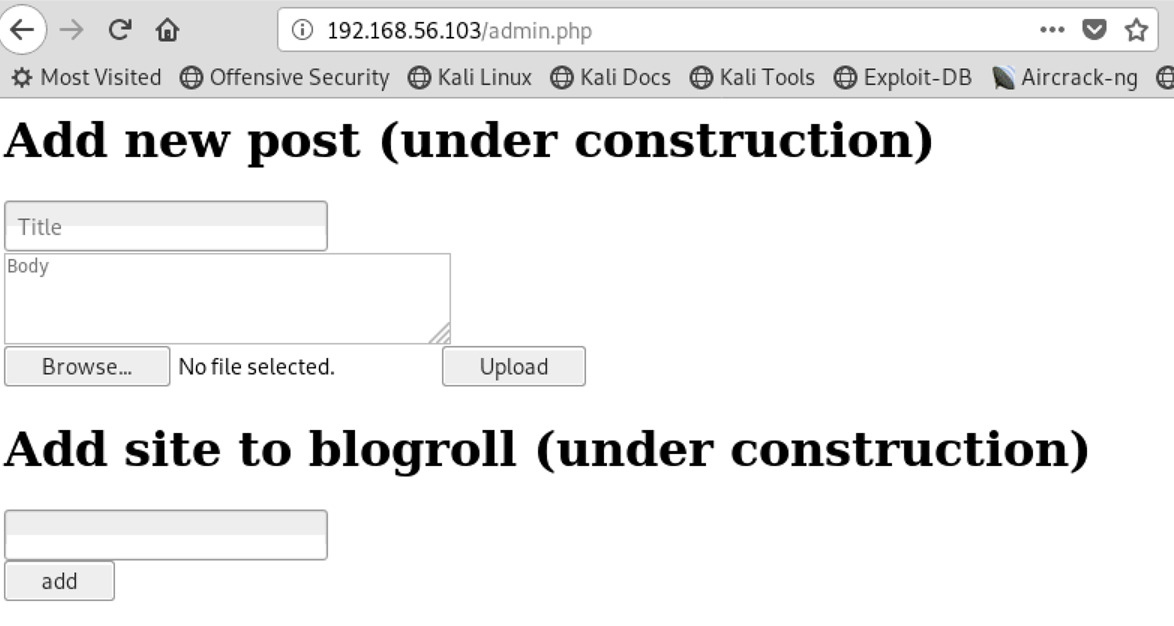 使用dirb进行目录扫描,目录字典使用默认字典:dirb http://192.168.56.103